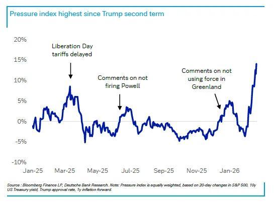德意志银行策略师构建的一项分析框架显示,特朗普往往在市场压力最大时做出最具冲击性的决策。